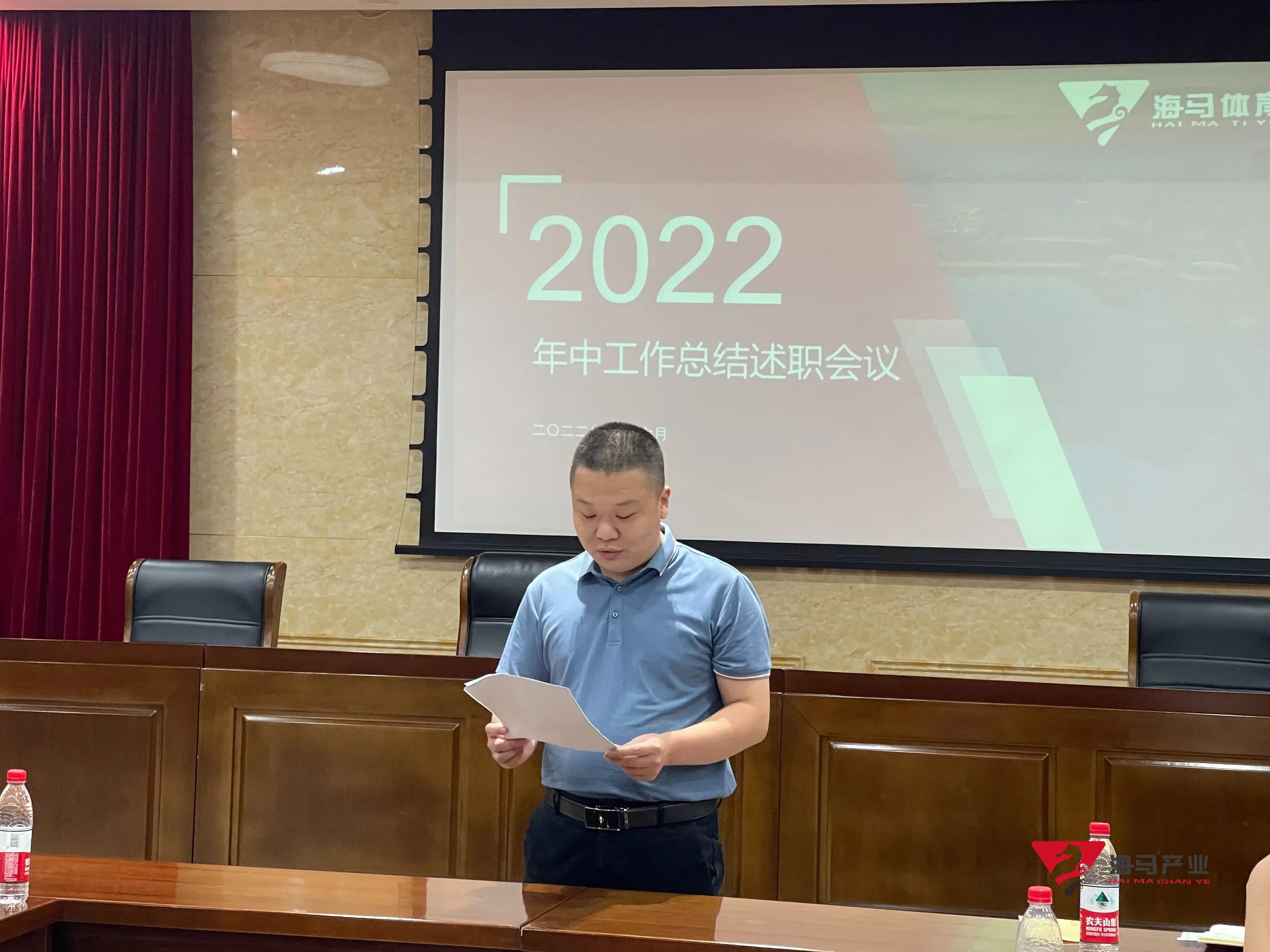 2022年6月29日下午,摩登7文化产业集团在山东省体育中心二楼会议室召开年中工作总结述职会议,会议对上半年工作成果进行了总结汇报,并就下半年重点工作进行部署。总经理王海民出席了本次会议。会议由综合管理部负责人王永健主持。